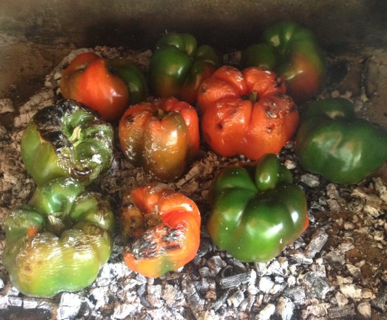 | Sweet Peppers over direct wood ember cooking |